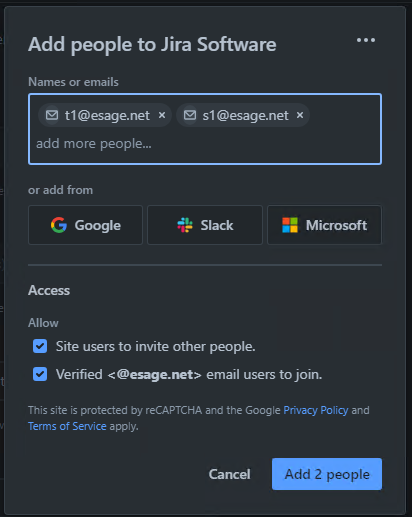 Next, add the e-mail address of your instructor in the Names or emails box so they can join Jira and be added to your team.