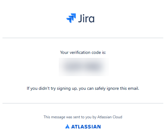 Signup code Verification Page Check your email for a message from Atlassian, if you don't see it after a few minutes, check your junk mail folder. The message will looks something like this:
