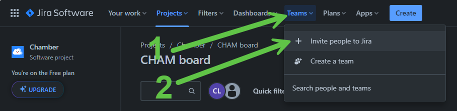 Invite your Instructor to Jira. From the Teams menu select + Invite people to Jira.