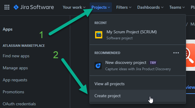 By default, JIRA creates the wrong kind of project for us to use with RTM, so we have to create a new project.
