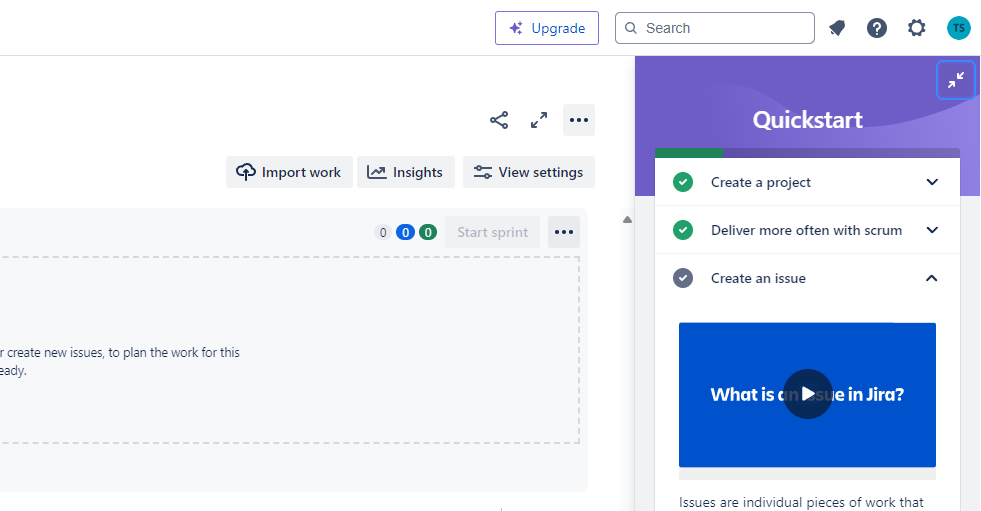 Notice the quickstart panel on the right side of your screen. It has tutorials that can help you get started. You can hide the quickstart if you wish.