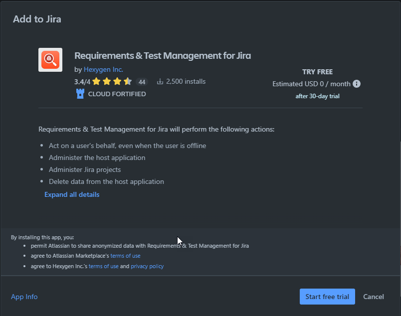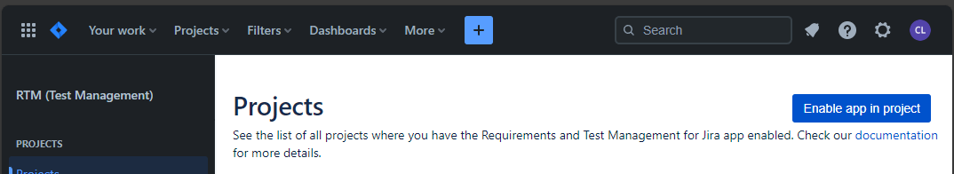Requirements and Test Management is an add-on app to Jira that you will use this semester. Complete the following tasks to install RTM