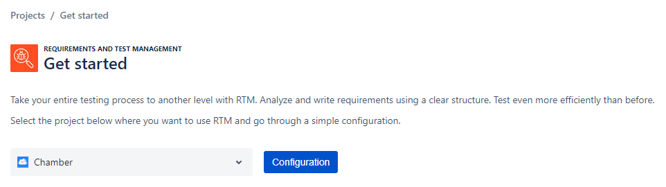 On the next screen you must choose the project where RTM will work. Click the "Choose Project" dropdown box, then choose Chamber as your project to enable. Then click the Configuration button.