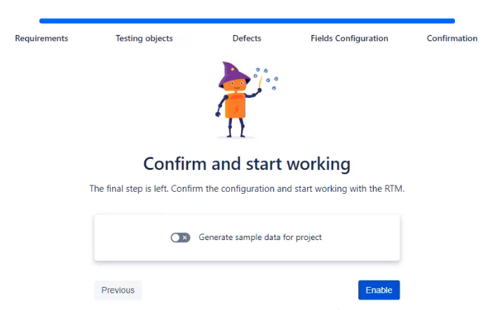 To allow RTM to work in our project, we must click the Enable app in project button.