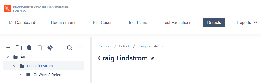 First you will want to organize your defects. Click on the Defects menu and create a folder for your name and a subfolder for the week.