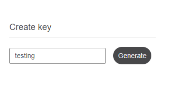In the Create Key section, give your API key the name "testing" and click Generate.
