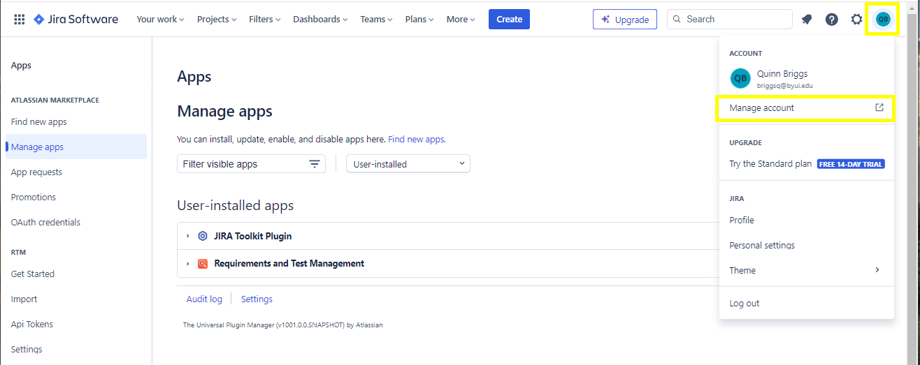 To do this, go into Jira and click the gear symbol at the right of the screen as shown. This will open a