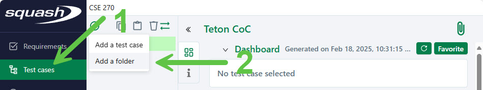 - To create a test case, from the test cases screen, select the folder where you want the test case to reside