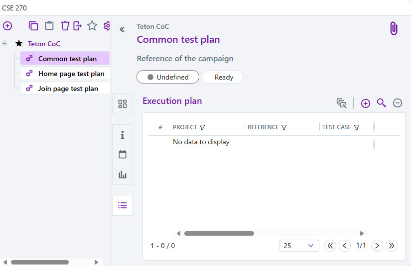 - To create a test plan (campaign) select the Executions link on the left navigation bar.